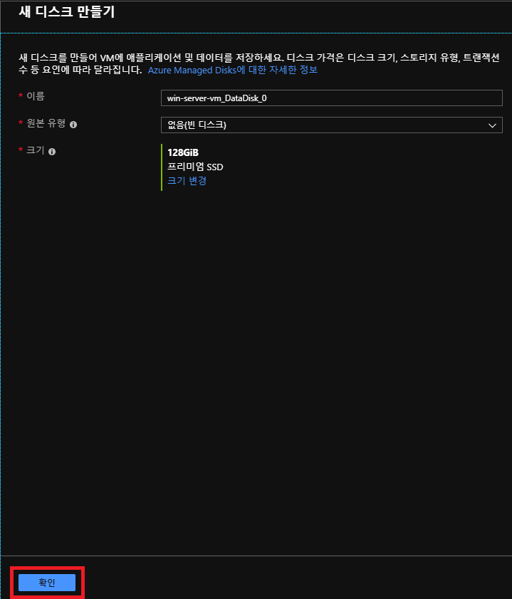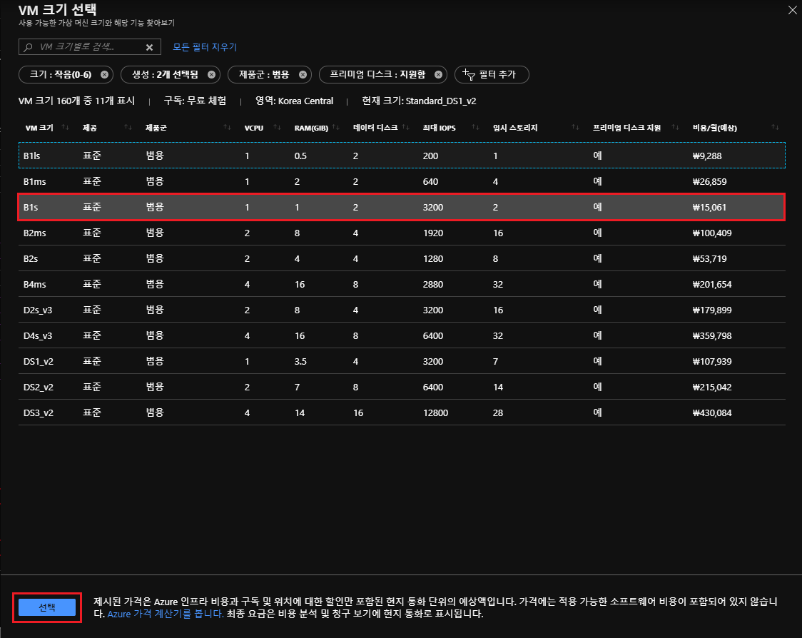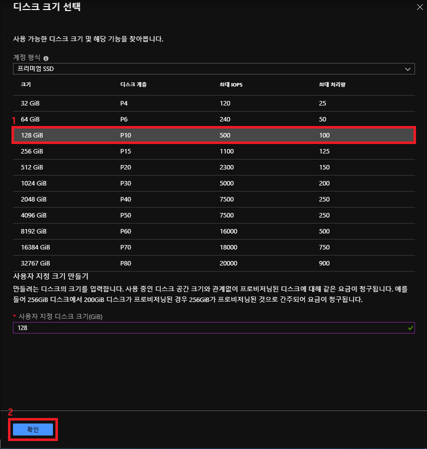 사양을 선택하고 확인 버튼을 클릭합니다.