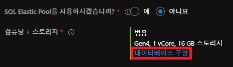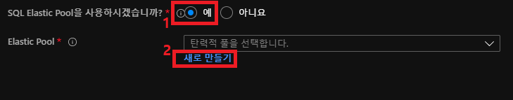 'SQL Elastic Pool을 사용하시겠습니까'에서 예를 선택하고 Elastic Pool에서 새로 만들기를 클릭합니다.