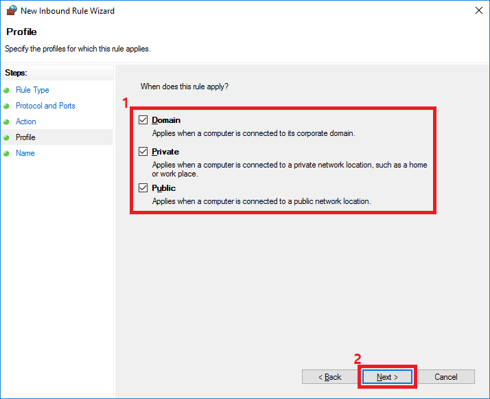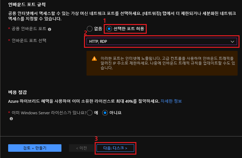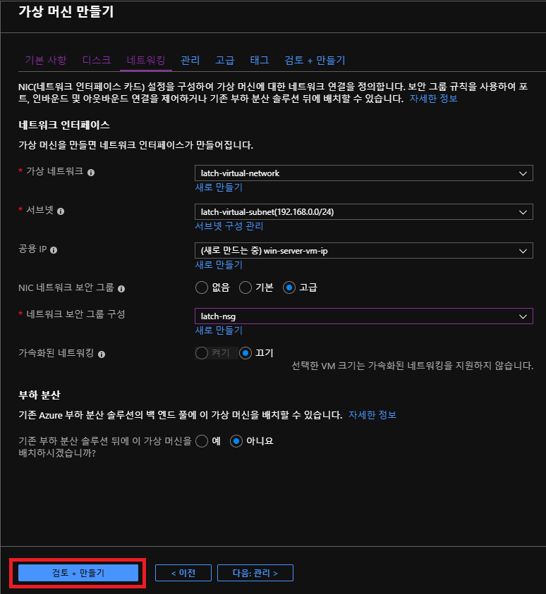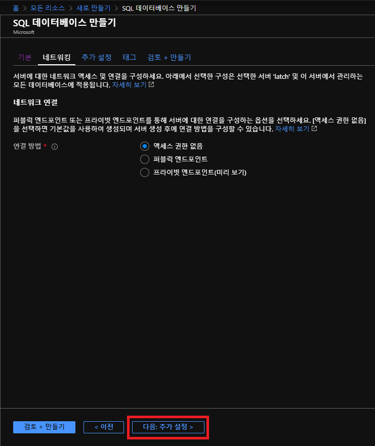 다음: 네트워킹 > 버튼을 클릭합니다.