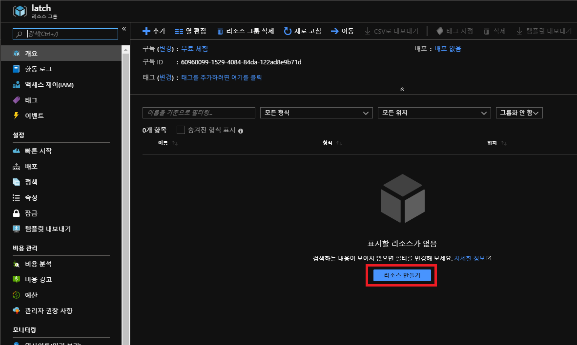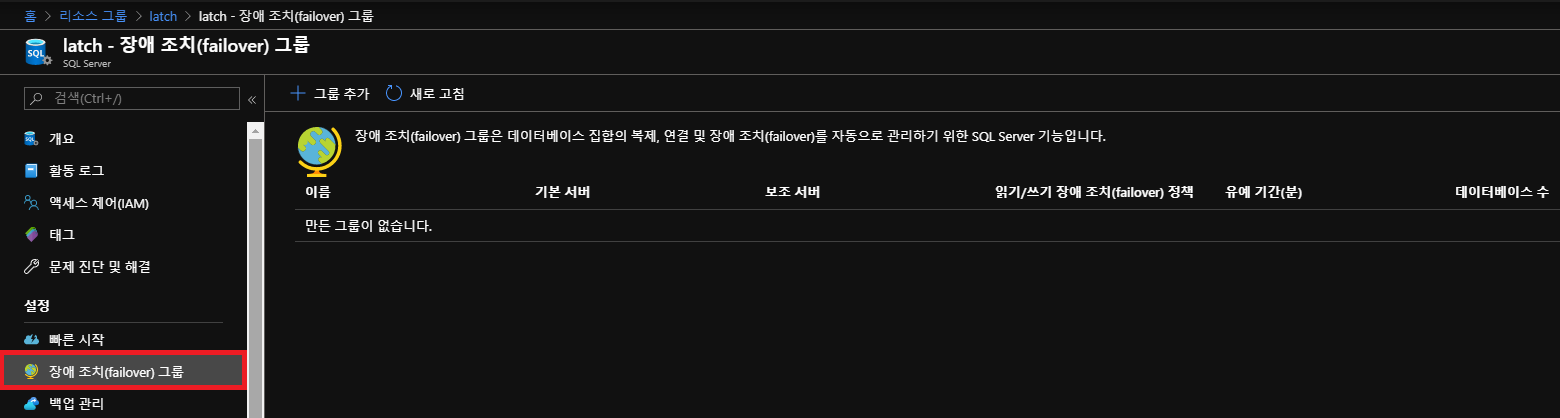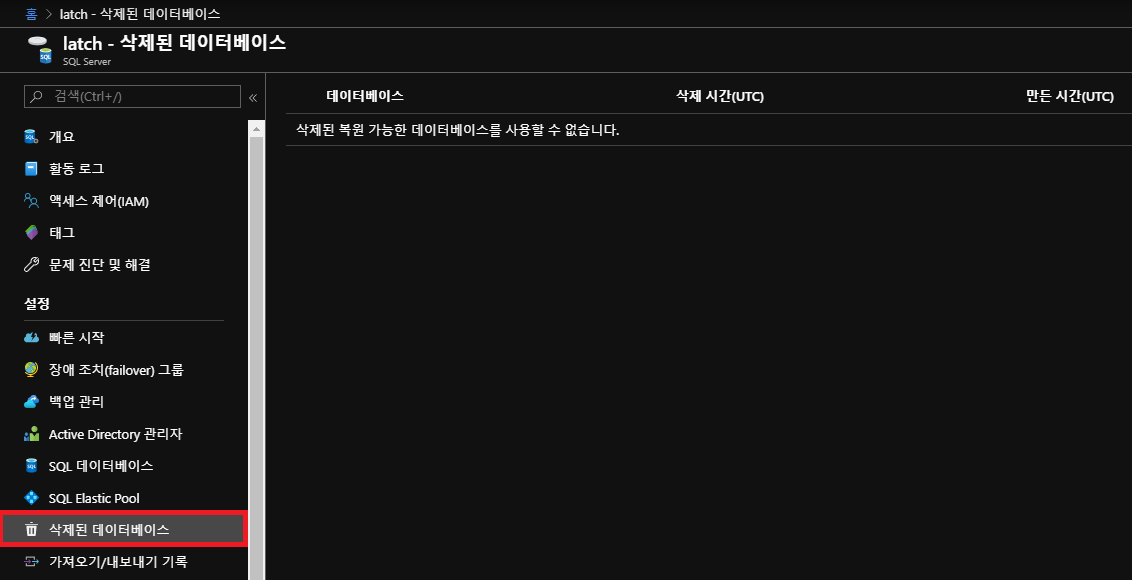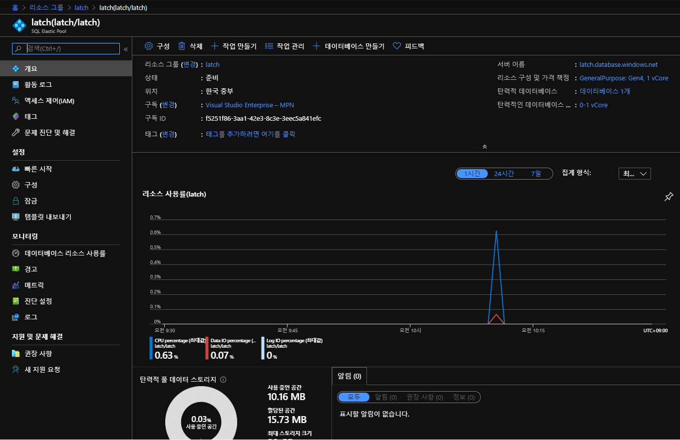 리소스 그룹을 확인하면 위 이미지와 같이 3개의 리소스가 생성된 것을 확인할 수 있습니다. latch(SQL Elastic Pool)을 클릭합니다.