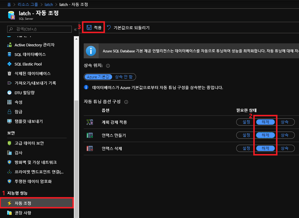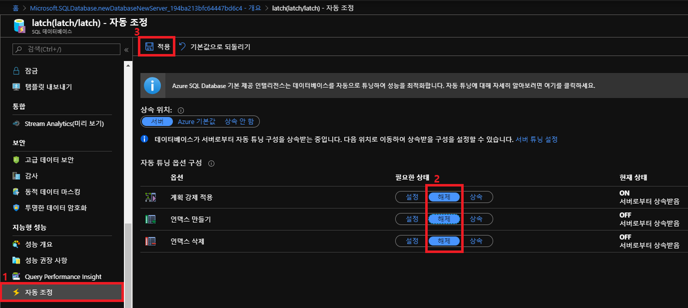 자동 조정은 사용자가 올린 데이터베이스를 자동으로 튜닝하여 성능을 최적화시킵니다. 자동 조정을 통해 성능의 이점을 볼 수 있지만 원치 않는 변경으로 서비스의 장애가 발생할 수도 있습니다.
