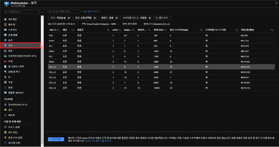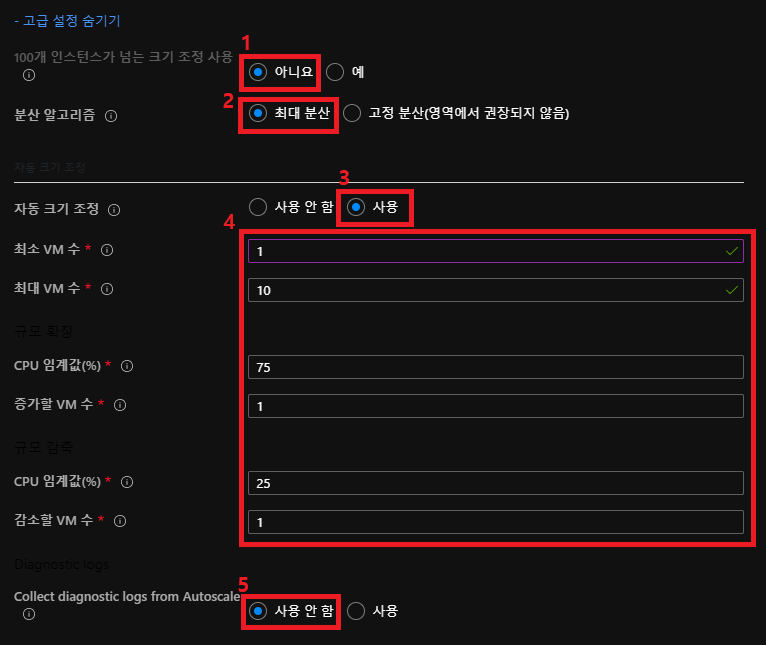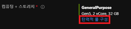 탄력적 풀 구성을 클릭하여 사양을 선택합니다.
