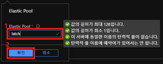 Elastic Pool의 이름을 지정하고 확인 버튼을 클릭합니다.