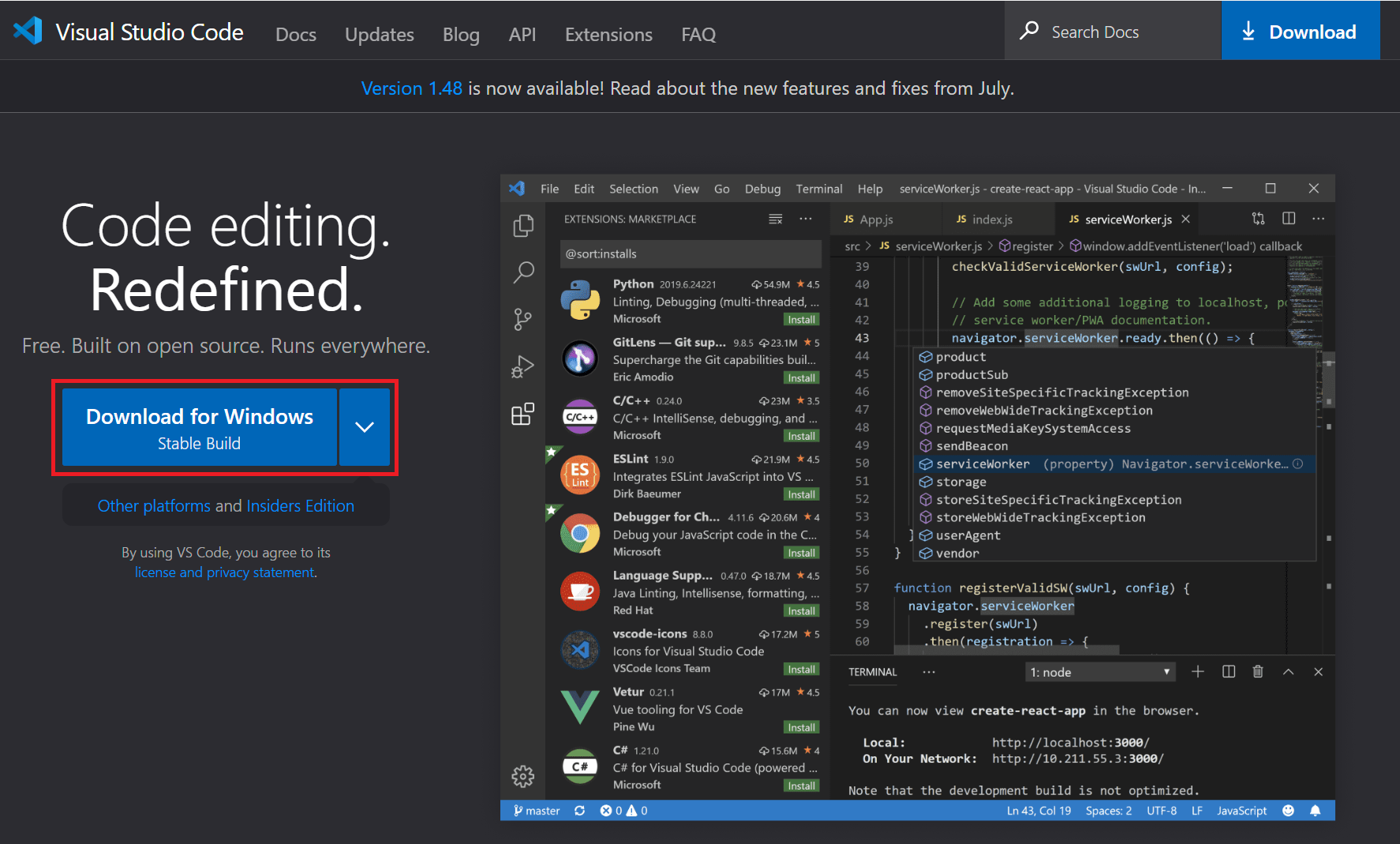 웹 브라우저에서 비쥬얼 스튜디오 코드 홈페이지에 접속합니다.