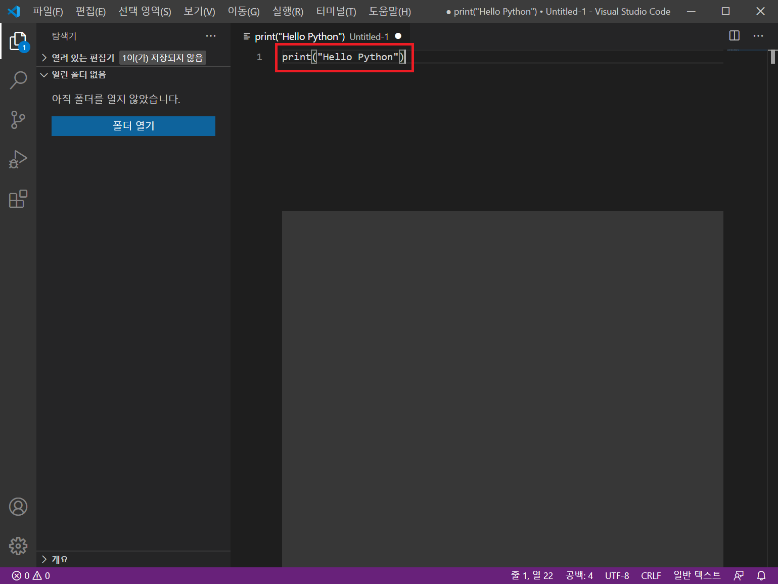 새 창에서 파이썬 코드를 입력합니다.