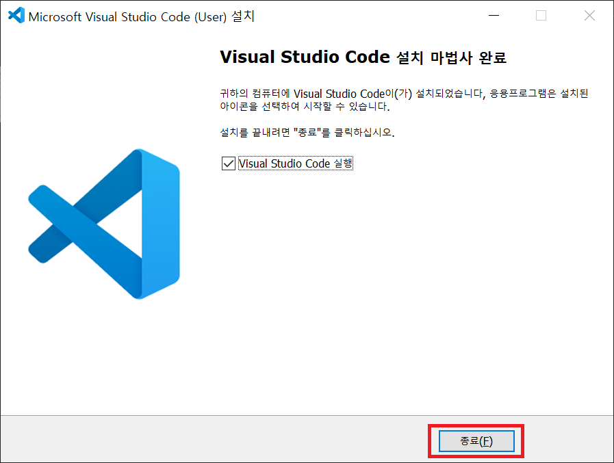 설치가 완료되었습니다. 종료 버튼을 클릭합니다.